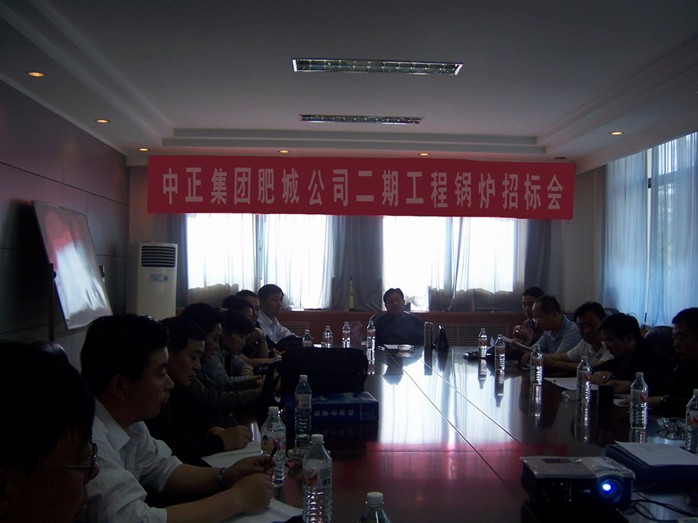 5月19日上午,中正集團(tuán)肥城公司二期工程鍋爐招標(biāo)會在集團(tuán)總部二樓會議室舉行。肥城市建設(shè)局領(lǐng)導(dǎo)、中正集團(tuán)領(lǐng)導(dǎo)班子及肥城公司董事參加了招標(biāo)會,來自天津、江蘇、山東等地的4家商家參加了競標(biāo)。